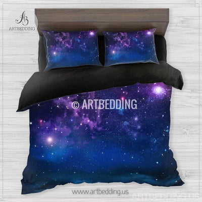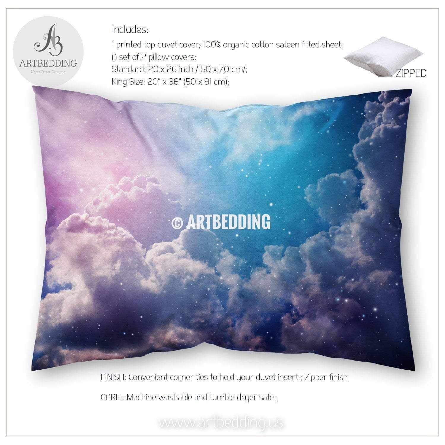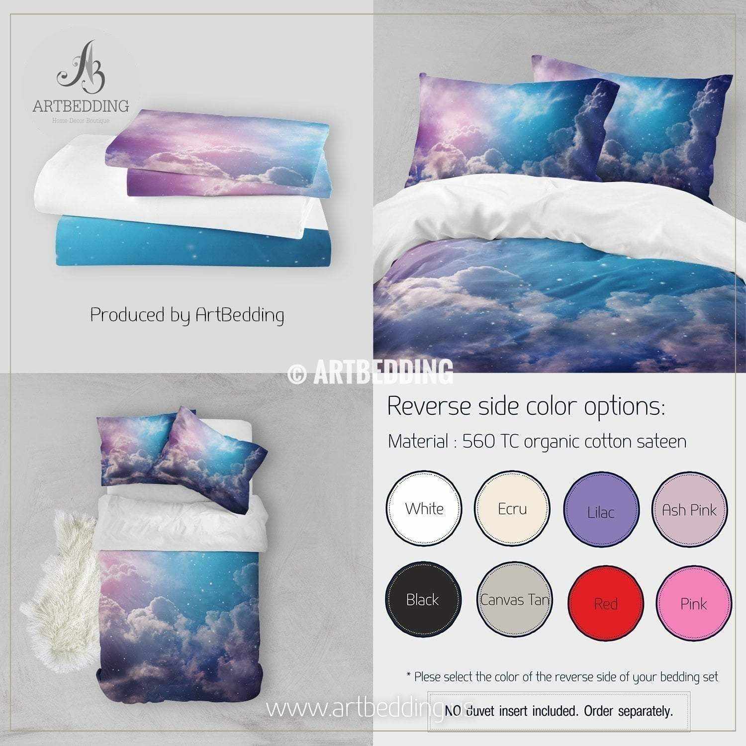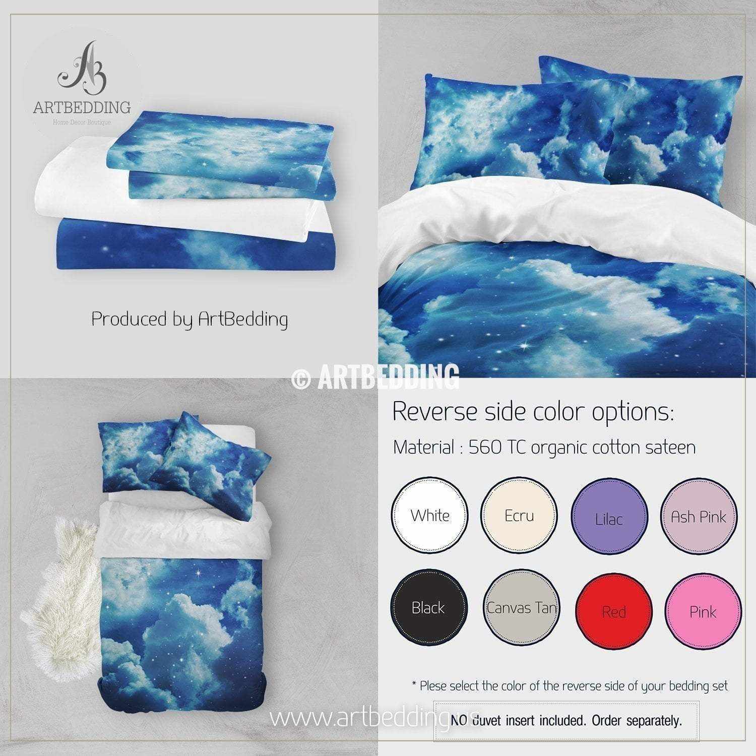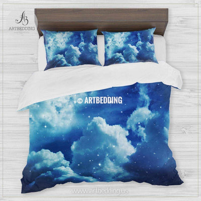 Sky bedding, Night sky Bedding set, Deep blue and purple night sky with stars Duvet cover set, Clouds bedding
