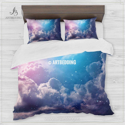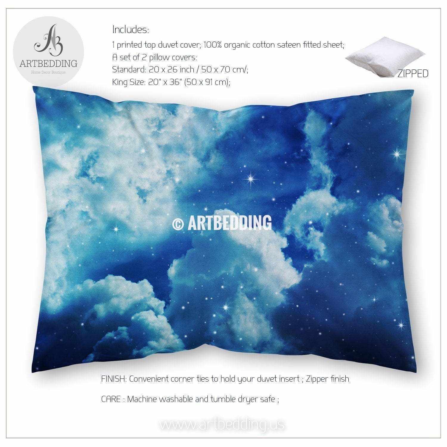 Beautiful cloudy blue sky bedding, Queen / King / Full / TWIN stars Galaxy Duvet Cover, Cotton sateen bedding set, Skies bedding