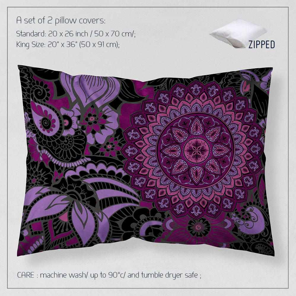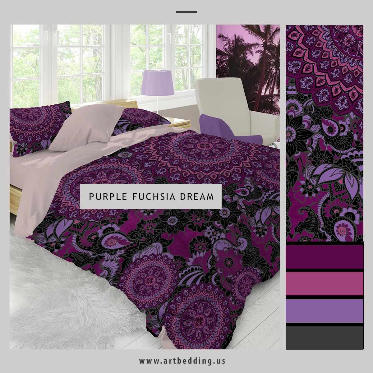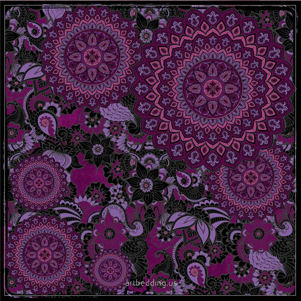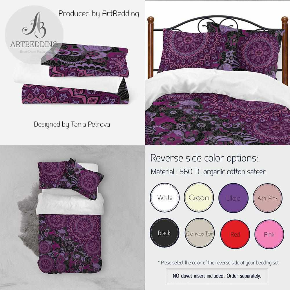 Boho Mandala bedding, Black and plum Mandala duvet cover set, Boho bedding, mandala bedspread