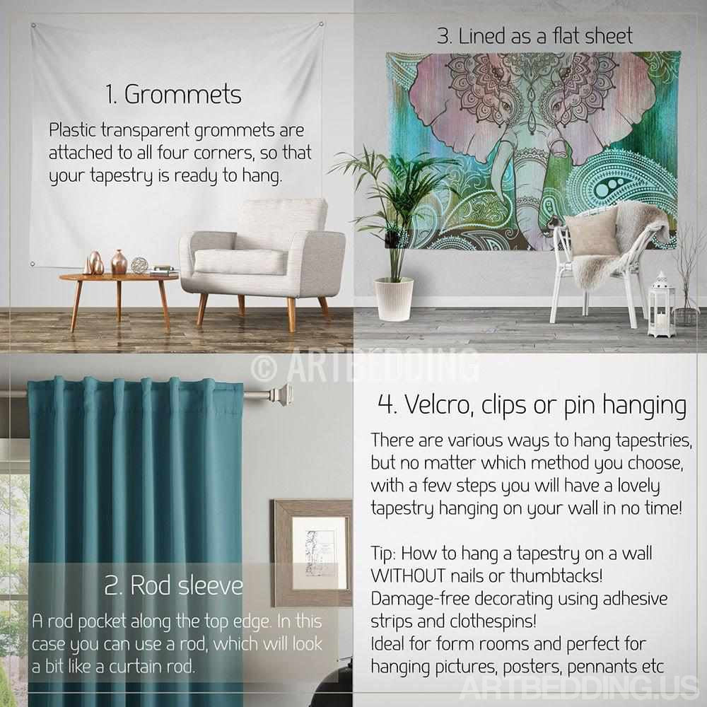 FINISH: There are different ways to hang your tapestry to the wall. The most common are: