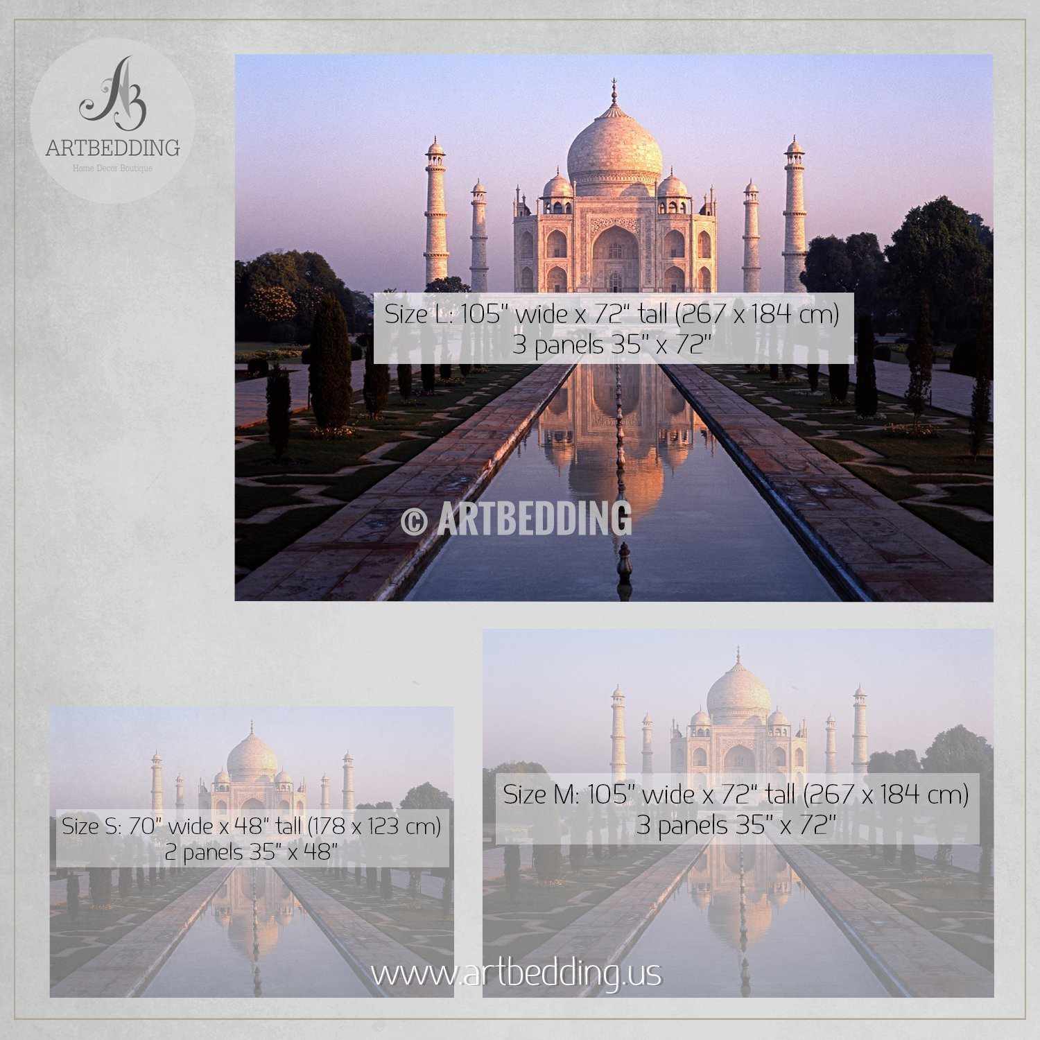 • Medium: 105" wide x 72" tall (267 x 184 cm) – 3 panels 35’’ x 72’’