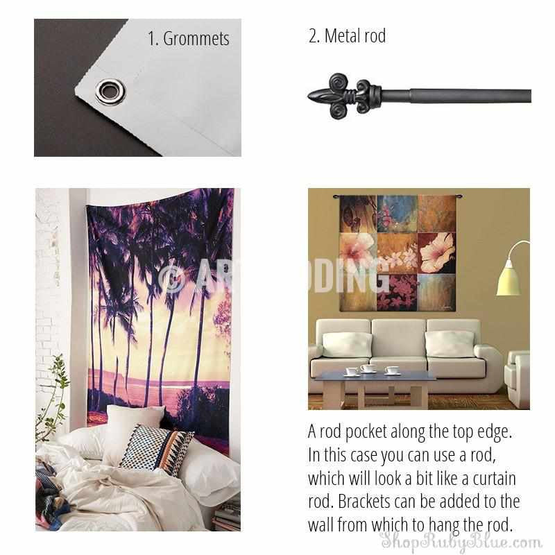 FINISH: There are different ways to hang your tapestry to the wall. You can select one of the 3 most common ones: