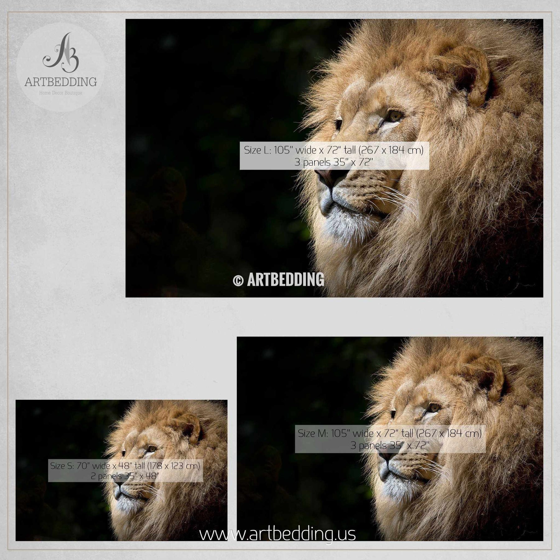 Large: 145" wide x 100" tall (368 х 254 cm) – 4 panels 36.25” x 100”