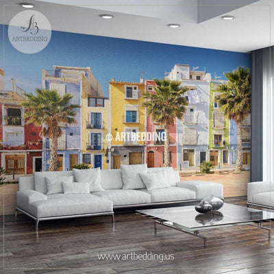 Colorful homes in seaside villa of Villajoyosa in Southern Spain Wall Mural, Landmarks Photo Mural, photo mural wall décor wall mural