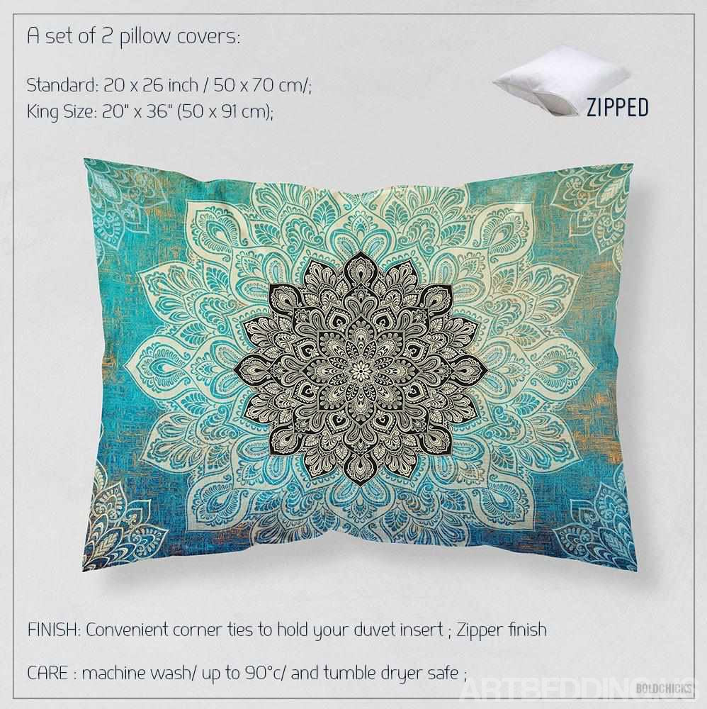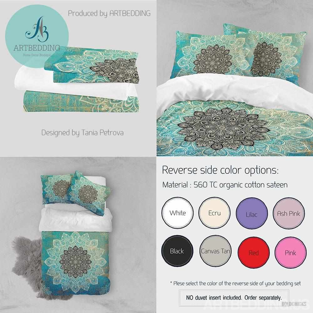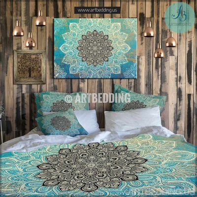 DESIGN: This beautiful multilayer ecru and black flower deco mandala with a vintage feel is combined with a grunge texture in turquoise green and gold with matching design elements for an overall perfectly balanced and modern look. This boho chic bedding set will become the center point of any space.